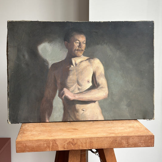 French Mid-Century Figurative Painting Intimate Female Nude Study on Panel by Claude Foënet