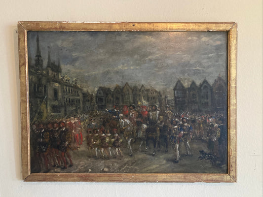 Antique French 19th-Century Oil on Panel King François I Entrée Triomphale (Triumphal Entry) Royal Procession Scene