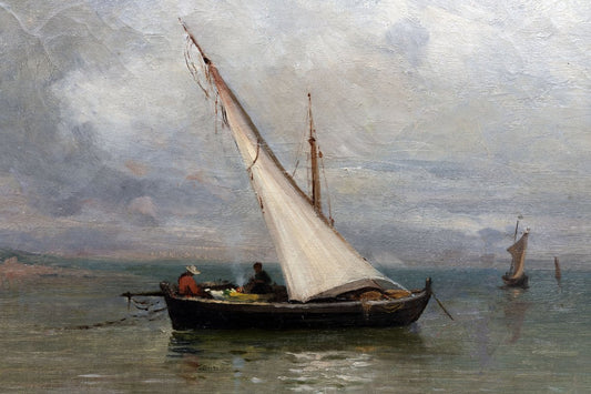 Antique 19th Century French Mediterranean Seascape with Fishing Boat