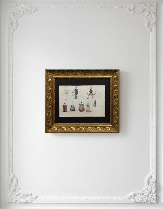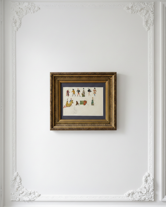 Antique 19th-Century French Costume Studies Theatrical Costume Design Sketch Renaissance Dress