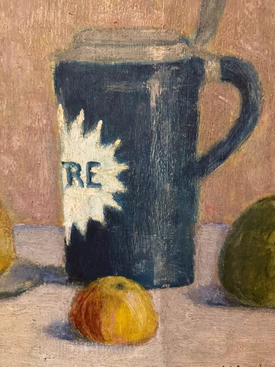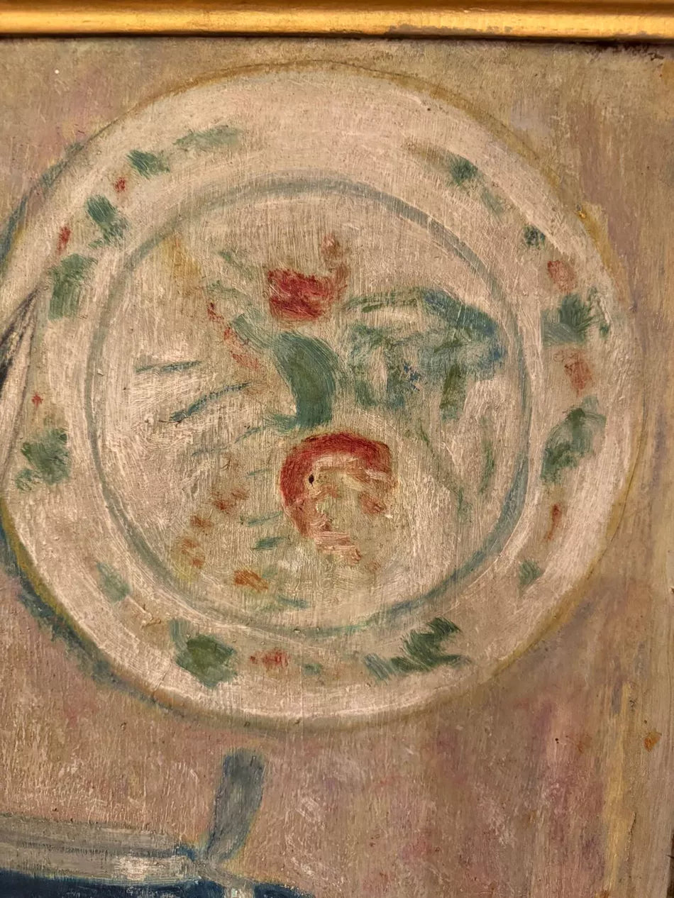 This is a large, soulful piece meant to be lived with. At 33 inches wide, this is not a modest piece. Its scale gives it a commanding presence, making it perfectly suited as a standalone focal point in a dining room, living room, or entryway. More than decoration, it is a painting that transforms a space, carrying with it the quiet poetry of everyday objects and the comfort of a home steeped in history.