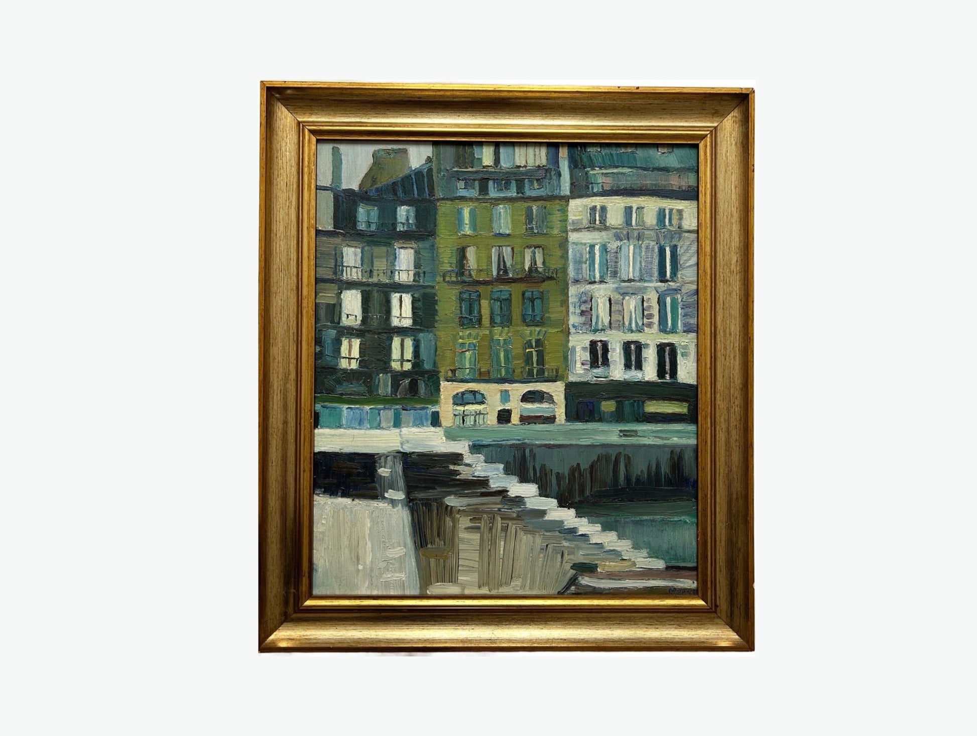 This sophisticated piece demonstrates the power of modernist painting to find beauty in geometric simplicity. The artist's dynamic treatment of light, shadow, and form elevates a simple urban scene into something extraordinarily compelling. Perfect for collectors of mid-century art or anyone who appreciates how masterful brushwork can transform the ordinary into the remarkable.